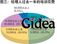 ●约一半经理人在培训上的花费在5,000元人民币以上