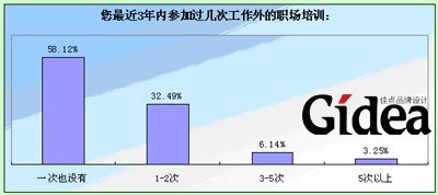 然而意识到和做到还是有很大差距的,从调查结果来看,实际上只有近四成的人在3年以内参加过工作以外的职场培训,参加了3次以上的仅不到一成。