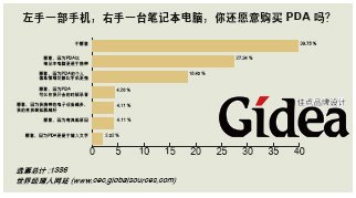 当你左手持一部手机,右手持一台笔记本电脑,你还想买PDA吗?世界经理人网站的调查显示,近40%的人选择了"不愿意",选择"愿意"的超过60%,仍然占大多数(见柱状图)。从1993年苹果公司推出第一款PDA以来,PDA经历了1998年前后的快速发展,到2002年已经开始进入历史低迷期。一方面,笔记本和手机功能的日趋完善和智能化,几乎可以取代PDA提供的信息处理功能;另一方面,作为传统IT礼品大户,PDA逐渐被时尚的数码相机、MP3等产品取代。然而,PDA厂商并未因此而停滞不前。如今的PDA产品加入了很多新的元素:与传统的PDA相比丰富了娱乐和多媒体功能,同时多应用产品不断出现;整合型产品的推出,使得PDA和手机的界限愈发模糊。然而添加了新功能的PDA是否会迎来雨后的彩虹?我们拭目以待。 娱乐型PDA现如今,娱乐性强的多媒体数字消费品越来越受到消费者青睐。但是,由于个人喜好不同,他们对数字产品的偏好也不一样:有人喜欢听音乐、有人喜欢看电影、有人喜欢拍照摄像……是否可以有一款产品,同时满足不同消费者的数字需求呢?2003年以来,中国PDA市场掀起了产品功能整合的浪潮,PDA产品由单纯的个人信息处理工具转变为信息终端产品和多媒体娱乐产品。华硕A730的推出就是一个例子。