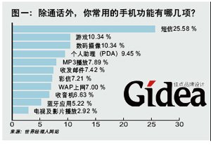 你究竟有多了解你的手机?你知道什么叫蓝牙、红外吗?你知道怎样通过手机收发邮件、欣赏电影吗?除了通话以外,你常用的手机功能都有哪些?据世界经理人网站调查,短信、游戏和数码摄像排在前三位。(如图一)很明显,前三位都是容易掌握且娱乐性高的项目。那么,对于不熟悉的功能,你是不是习惯性地忽略了它呢?我们总结了手机功能的几大关键词,希望可以帮助你更了解自己的手机,给你的生活增添更多的乐趣和方便。功能关键词一:短信短信的功能无须赘言。自1992年由英国沃达丰(Vodafone)正式商用以来,