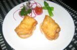 蒜香雪鱼球 食材:银雪鱼50g,蒜肉20g,面包1件。