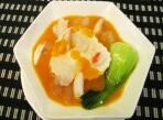 蚧肉雪蛤烩豆腐 食材:新鲜蚧肉,雪蛤,豆腐,南瓜。