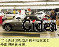 宝马公司一直寻找用在未来轿车上的新的技术和设计方案,它不把目光局限在公司内部的研发部门。为了获得外部的灵感,该公司"虚拟创新机构"(VIA)负责联系与公司无关的一切有志于创新的人。VIA让所有的爱车人都能通过互联网发布他们的新想法,通过在线讨论吸取全世界车迷的意见。VIA成立之初,就收到了4,000条建议。