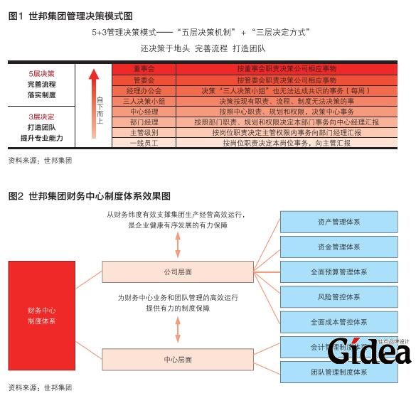 世邦集团作为一家高科技民营企业,管理团队中无一名家族成员,是真正的扁平化组织架构,一切管理与运营井然有序。经过潜心培育,公司形成自下而上和 自上而下的垂直贯通、横向畅流,个人决策与集体决策多维融合的立体管理决策体系,以老板为主导集结众人的智慧,独创了以“3+5”为主、“5+3”为辅的 管理决策模式(见图1)