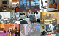 经理人在抵达酒店的五天前就会收到一封人性化的电子邮件,在邮件中包含了旅游目的地的交通情况、天气情况、饭馆信息以及方位和地图服务。而且,可以坐在家中通过网络,提前安排好诸如客房送餐、SPA水疗、会议室等特色服务和设施;还可以预先提出一些个性化的要求,比如按自己的睡眠习惯增加枕头、预订迷你冰箱以及提前或延后结账等等。现在,包括万豪、JW万豪、万丽、万怡等品牌在内的全球将近2,500家万豪集团旗下酒店都已经推出了这两项在线服务。 随传随到的技术服务除了要求舒适愉悦或者豪华尊贵的入住体验之外,经理人们最关心的还是酒店的商务办公设施以及相关的服务。比如,是否在房间、大厅、酒廊或者是咖啡吧里都能够无线上网;宽带连接是否通畅迅速;是否在房间内就可以直接指挥国际电话会议等等。这些都是成功商务旅行的必备。在香港,2004年春天刚刚开幕的数码港艾美酒店,不仅为全部173间豪华客房都配备了42寸等离子电视,无线宽带上网以及数码娱乐系统,甚至在设计现代化的浴室当中,也安排了无线网络接入。在北京,曾获选为"北京最佳商务酒店"的东方君悦大酒店,