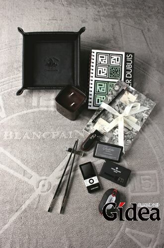 欧米茄超霸系列50周年纪念表盒;zenith烛台;豪爵精美记事本;豪爵USB;格拉苏蒂USB ;百达翡丽USB;豪爵MP4;万宝龙套筷;天梭光电鼠标;背景:纪念宝珀50噚系列开司米沙滩毯 VICKI TANG为《尚品人生》编辑。