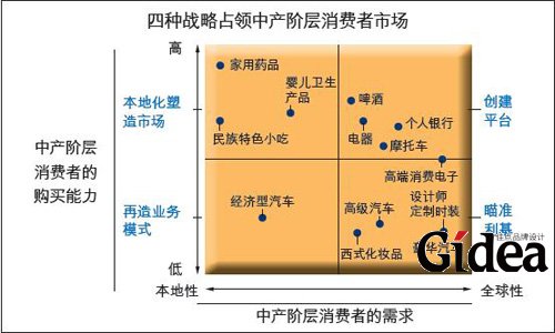 对于需求本地性(上海创意海报设计即:中产阶层消费者在发展中国家市场的需求不同于在发达国家市场的需求)且购买能力较高的中产阶层消费者,企业可以采取本土化塑造市场战略。通过附属产品的优化和更鲜明的定位来塑造市场,激励这类消费者渐渐地转向消费全球性产品和服务,并使得企业乐享更大的规模经济和更低的供货成本。