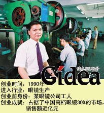 在眼镜行业,业务细分的趋势日益明显。1996年,他转到利润更高的眼镜零配件领域。由于产品设计领先潮流,业务发展迅速,市场份额不断增加。到了1999年,公司更是乘胜出击,涉足到眼镜成品生产领域。
