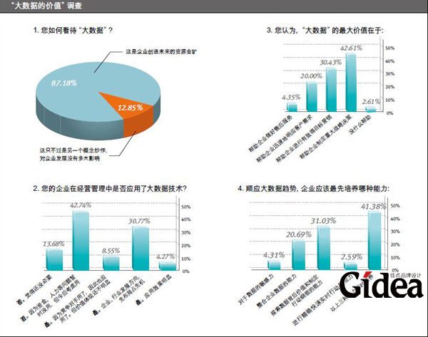 大数据能够让企业发现新的蓝海。在调查中,我们还发现, 29.81%的企业已经运用了大数据,41.35%的企业想用,但是因为资金、人力或其他原因暂时没实行。由于技术和基因的原因,传统企业在数据应用上的能力与互联网企业相比还有差距。在“企业应当最先培养哪种能力”的调查选项中,40.78%的人认为,整合企业数据的能力、探索数据背后价值和制定行动纲领能力,以及进行精确快速实时行动的能力应当同时培养。