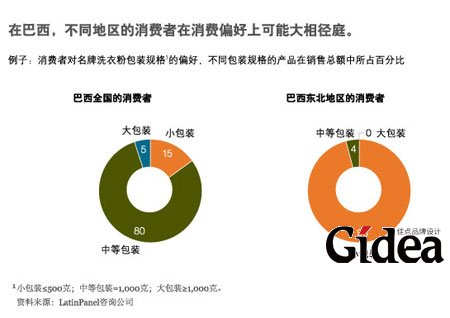 * 许多包装商品企业认为,在巴西,洗衣粉已是一种成熟的产品门类。但是,巴西比较富裕的消费者正将其洗衣机升级换代为更大、更高档的产品,而在东北地区,许多消费者正在购买自己的第一台全自动洗衣机。因此,新型配方的洗衣粉具有巨大的增长潜力——在东北地区,其每年的消费量还不到南部地区消费量的一半。然而,要抓住这种机会,就需要对该地区消费者有透彻的了解,尤其是他们对洗衣粉的包装规格有何偏好(图表4)。东北地区的消费者也喜欢使用香气浓郁、泡沫丰富的洗衣粉,但对衣物增白剂兴趣不大。