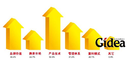 无独有偶,商业模式创新同样也成为企业实现产业升级的重要途径,调查显示,51.9%的企业在这方面进行了创新,而谈到具体的创新手段时,48.1%的受访者选择了“以提供服务的形式经营”。而37.1%的受访者则是选择“抛弃价值链低端的业务,进入高端领域”(见图5)。