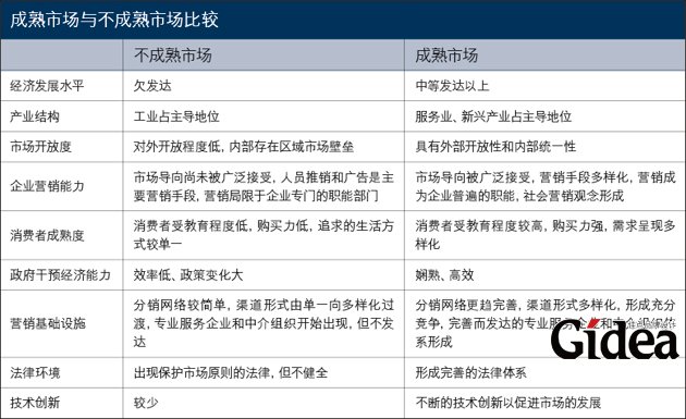 市场总体要成熟,国家经济就要达到中等发达水平,此时市场需求、市场竞争都变得非常充分,生产供给能力也强,人们有钱去购买,市场也就活跃发达了。在不成熟市场里,经济总体发展水平比较低,无论是GDP规模还是人均GDP,都比较低。