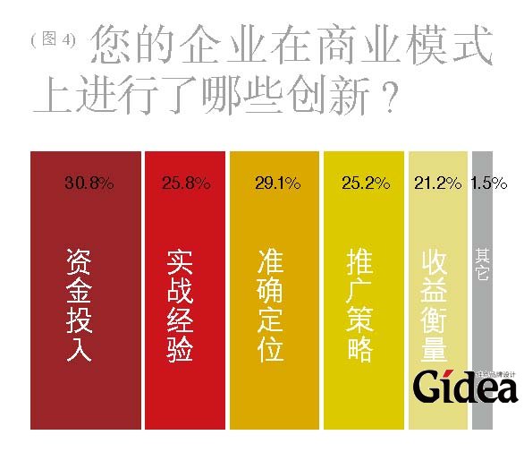 61.2%被调查者表示,企业未来一两年内一定会有创立自有品牌或者是提升现有品牌知名度的计划。而表示正在考虑实施这项计划的被调查者也达到了28.5%,这表明,绝大多数中国企业已开始意识到,通过对品牌的打造与经营可以帮助企业实现升级的目标。然而,打造品牌的难度也是不可忽视的。30.8%的受访者认为,“大量资金的投入”是他们的难题,而如何“找准品牌定位”,则困惑着另外29.1%受访者。(见图4)。