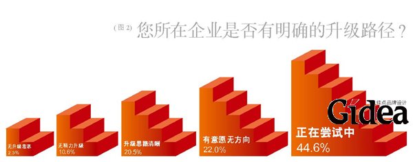 尽管还在初级发展阶段徘徊,但,多数中国企业表现出了明显的升级意愿。87.1%的被调查者表示,其所在企业已经在考虑产业升级的问题。然而同样应该引起注意的是,仅有20.5%的企业有着明确的升级思路,更多的企业还处在想要升级,但尚未找准升级切入口的尴尬境地(见图2)。