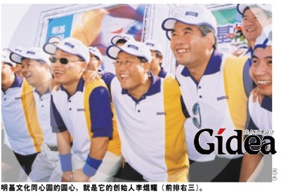 领导人,言传身教最重要 李焜j耀是明基的创始人,也是明基文化的"教父"。曾文祺对他充满敬意:"企业文化的形成尤如水滴滴到水里,形成圆圈扩散出去。可是水滴要不断地滴,才会形成不断扩散的同心圆。滴水的源泉就是这个企业的领导者,李焜j耀几十年的职业生涯,只创立过一个公司,就是明基。他力求把公司做到世界级,讲法和做法几十年来没有变过。"
