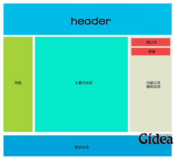 下面是豪禾广告示意的一个企业网站模板,比较能简单地说明问题。这个布局是最常见的国字型结构,主要包括首页header区域,文件头主要放置公司logo、价值观、联系方式、企业文化等细节要点,中间部分主要包括左侧的栏目列表一般都是产品分类,最左侧的部分中间部分主要包括企业介绍、服务理念等等,右侧可以放置一些企业新闻、站内搜索功能,而最底部就是网站版权信息、备案号、地址、联系方式。