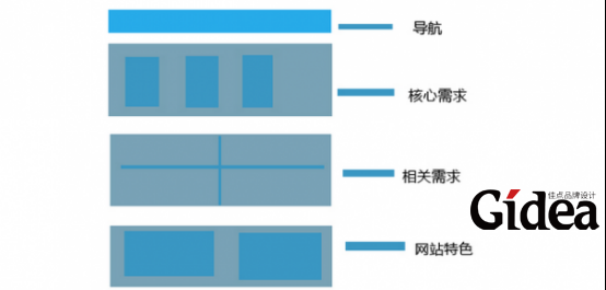 一般网页布局过程中首先是网站导航,导航简单明了,内容一般涵盖产品介绍、关于我们、新闻资讯等,第二个模块要体现的是网站的核心需求,核心需求主要表现在二级栏目页或者首页左上角关键位置的服务或者产品展示上面,主要把用户最为关心的内容呈现在用户眼前,而相关需求则是与核心需求相辅相成主要对于核心需求起到补充说明的作用。